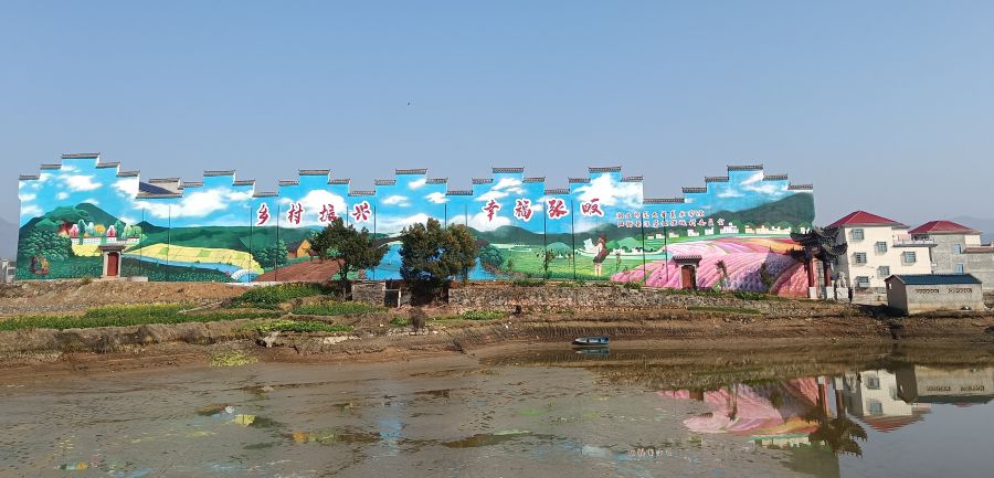 湖北师范大学驻村工作队的毕光辉说,这幅被称为“阳新第一画”的巨幅墙体彩绘是湖北师范大学美术学院谢欧教授团队于去年底绘制而成的。