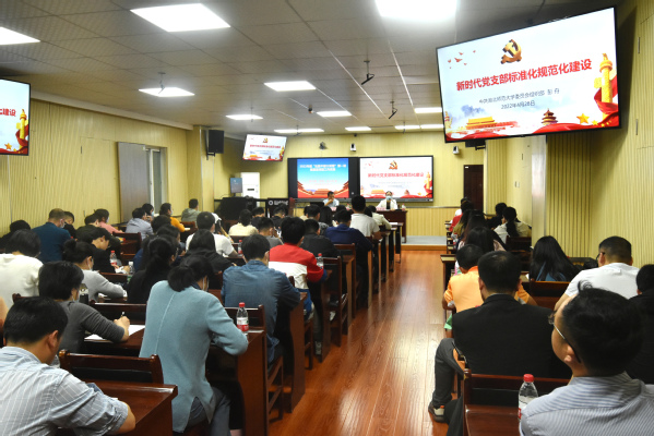 本网讯(通讯员 赵一诺 摄影 陈思源 罗帆) 为推进新时代党支部规范化标准化建设,4月28日下午,学校在教育大楼1316A举办学校2022年度“处级干部大讲堂”第一讲基层党建工作实务培训。培训会由组织部副部长、党校副校长孙丹娟主持。