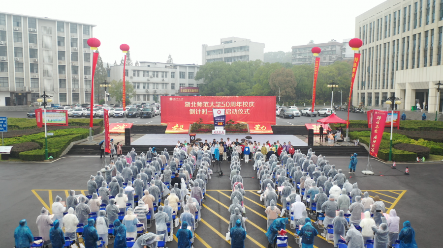 当天上午,湖北师范大学各单位负责人、校友代表、离退休教师代表、教师代表、学生代表齐聚学校达成广场,共同见证湖北师范大学50周年校庆倒计时一周年的启动仪式。