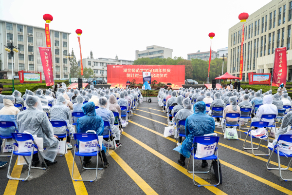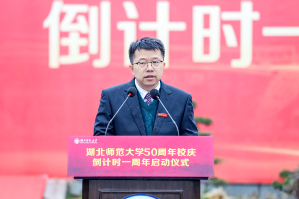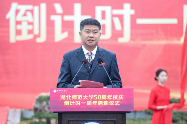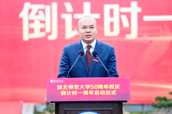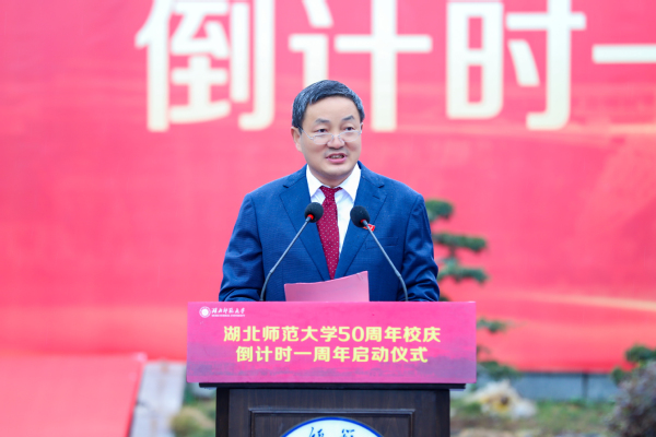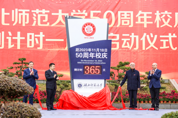 湖北师范大学党委书记李宏,校长雷儒金,原校领导、中国当代著名寓言大师黄瑞云教授,校友代表文学院96届校友、黄石二中党委副书记、校长周学君共同为50周年校庆倒计时牌揭幕。
