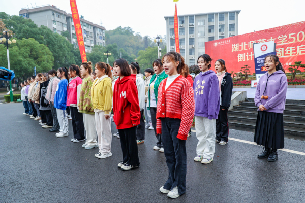 湖北师范大学50周年校庆倒计时一周年启动仪式在嘹亮的校歌声中圆满结束。