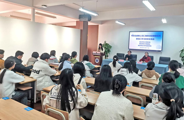 在词汇学习经验交流会上,一等奖获得者张亚婷、二等奖获得者傅心怡分享了词汇学习相关经验。张亚婷谈到,要以“新旧词结合”为核心,筑牢词汇根基,构建科学记忆体系;以“每日打卡机制”为纽带,养成自律习惯,强化学习动力;以良好学习工具和有效方法为双翼,增强学习耐力。傅心怡分享了一套“从输入到输出、从理解到运用”的方法:词根词缀记忆法、音节记忆法、情景记忆法、分类记忆法、运用实践法,认为关键在于找到适合自己的路径,实现高效学习。