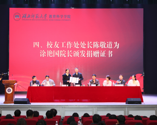 本网讯 为表彰优秀学子,激励学生发愤图强、积极向上,12月11日下午,教育科学学院在湖北师范大学大礼堂举办了2025年“发愤图强奖学金”颁奖仪式。教育科学学院名誉院长涂艳国,学工部、人武部部长杨志丹,校友工作处处长陈敬道,教育科学学院全体领导班子成员、班主任代表、学工办全体成员出席仪式。仪式由教育科学学院党委副书记刘广兵主持。