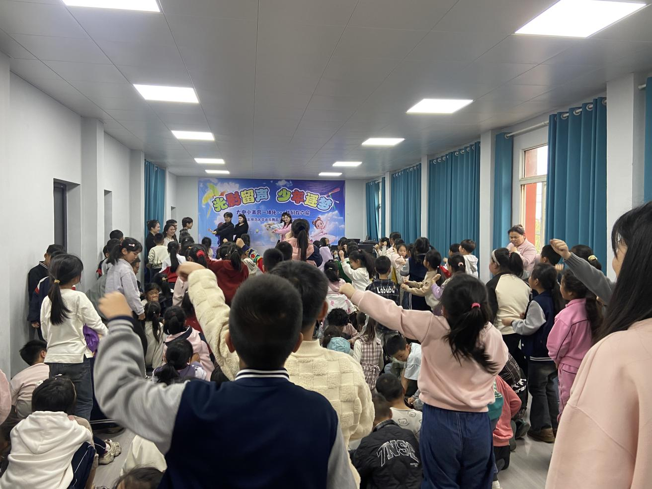 六房小学地处乡村,办学条件相对简朴,学校暂无专职音乐教师与常规音乐课。尽管如此,孩子们仍对音乐满怀热忱。当天,该校一至三年级学生全程观看了演出,在高校师生的引导下近距离感受音乐魅力。
