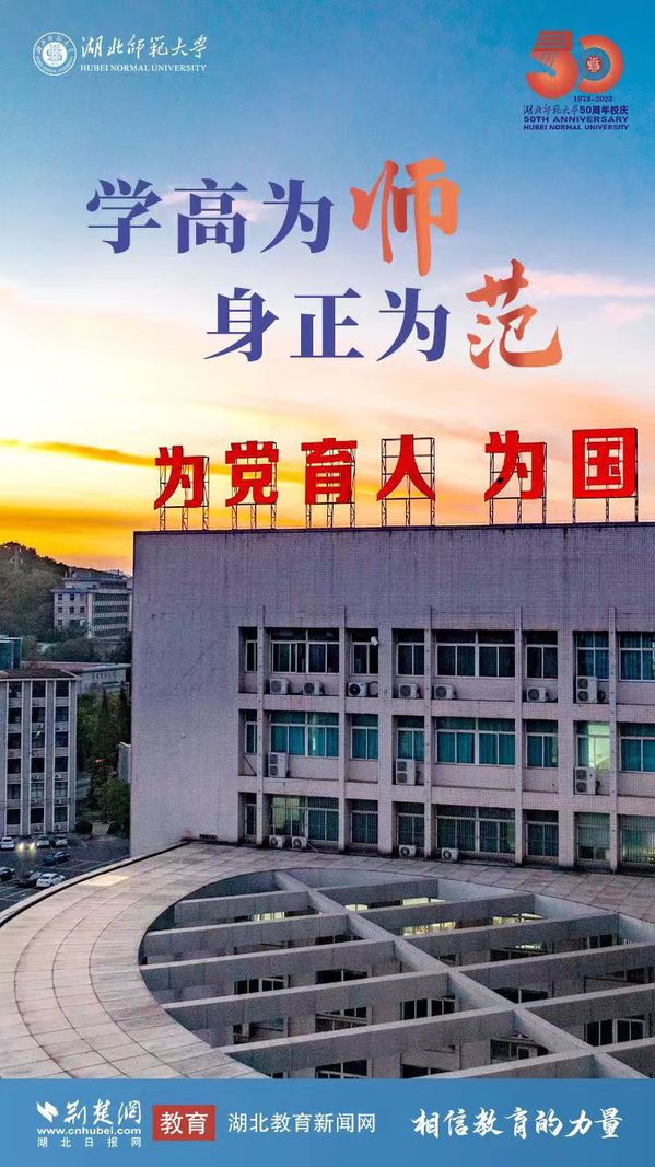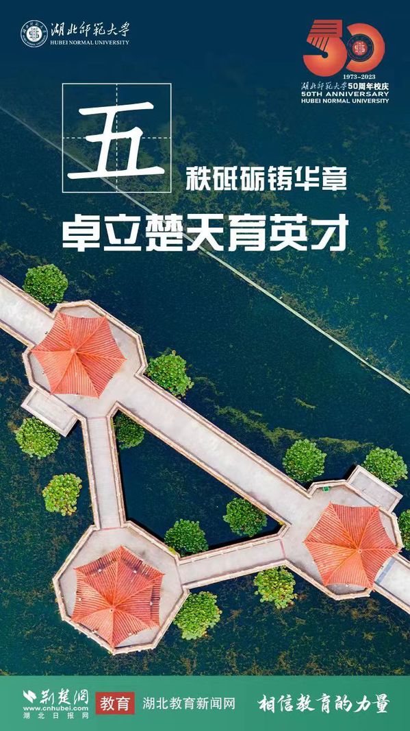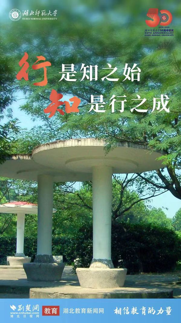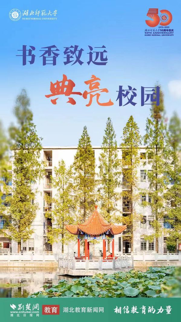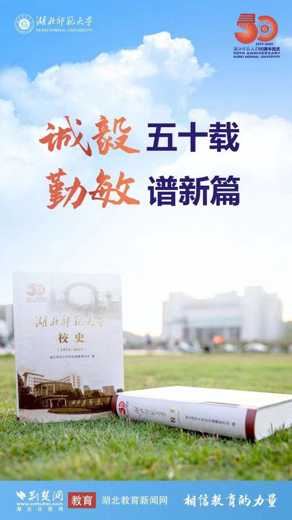 荆楚网(湖北日报网)讯(记者许文秀、唐天琪 通讯员李优、黄景兰) 50年风雨兼程,湖师人初心守望;50年艰苦奋斗,湖师人砥砺奋进。2023年11月18日,湖北师范大学迎来五十华诞。荆楚网(湖北日报网)联合湖北师范大学策划推出50周年校庆主题海报。一张海报,一个故事,熟悉的风景,崭新的篇章,勾勒出湖北师范大学独有的校园记忆。