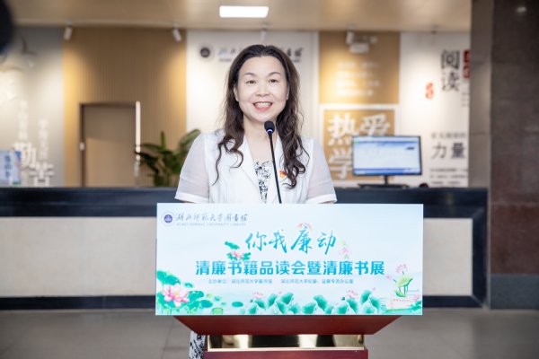 校纪委副书记、综合室主任刘刚向在场师生推荐了清廉书目,希望大家深入阅读廉洁文化经典著作,读原著、学原文、悟原理,践行廉洁文化,弘扬清风正气。图书馆馆长易桂姣向与会师生发出读书倡议:养成热爱读书的好习惯、博览群书的好习惯、善于读书的好习惯,坚持阅读,阅读清廉书籍,让读书成为校园最美的风景线。机关第八党支部、图书馆、生命科学学院、读者协会4位师生代表分别上台发言,结合工作和学习实际,分享了清廉书籍品读心得体会。与会领导还向师生代表赠送了清廉书籍。