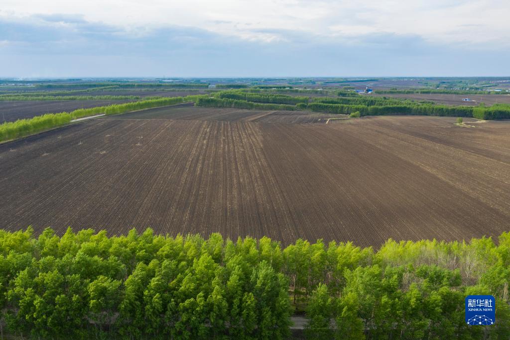 黑龙江省海伦市前进镇光荣村已完成播种的黑土耕地(2022年5月23日摄,无人机照片)。