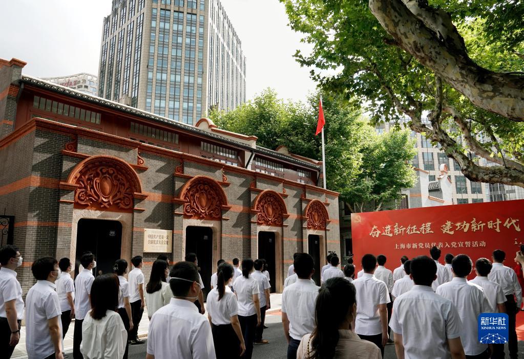 上海市新党员代表入党宣誓活动在中共一大会址前举行(2022年7月1日摄)。