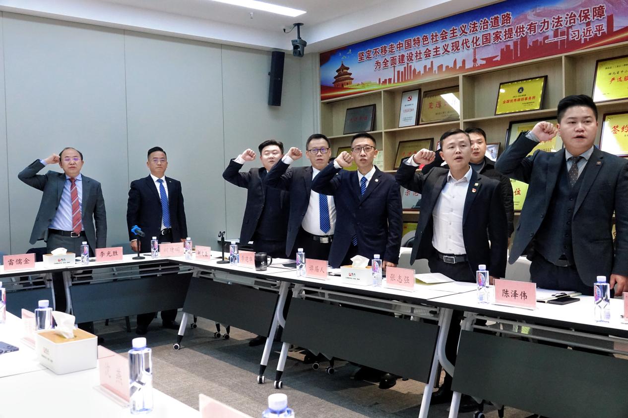 雷儒金介绍了湖北师范大学的发展历程,并对近年来湖北忠三(黄石)律师事务所通过校企合作、捐赠助学、技术指导等多种方式,为学校的事业发展和学生培养提供的支持与帮助表示感谢。他指出,此次联合主题党日活动不仅是一次宝贵的学习交流机会,更是一次增强党性修养、提高政治觉悟的重要契机,希望各党支部能够继续深化交流与合作。为持续推动双方携手并进,雷儒金建议,要进一步丰富双方合作的方式,不断探索创新党建和教学相结合的新路径,开拓校企合作新模式;要推进合作机制制度化,总结成功的经验并加以优化,签订校企战略合作协议;要携手共创双方合作的常态化,形成长期的合作关系,共同为法治建设贡献力量。
