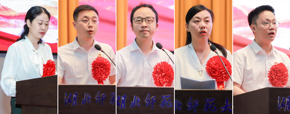 党委副书记马列军同志宣读《中共湖北师范大学委员会关于表彰全校优秀共产党员、优秀党务工作者、先进基层党组织的决定》。校领导为受表彰的先进集体和个人代表进行了颁奖,黄莘等100名同志获得“优秀共产党员”荣誉称号,张艳等10名同志获得“优秀党务工作者”荣誉称号,机关第一支部等10个党组织获得“先进基层党组织”荣誉称号。