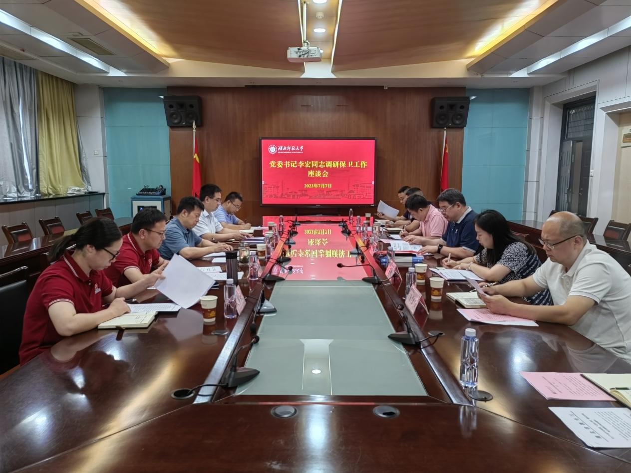 本网讯 为全面贯彻落实习近平新时代中国特色社会主义思想主题教育走深走实,7月7日下午,学校召开了保卫工作调研座谈会,党委书记李宏,党政办、组织部、宣传部、人事处、财务处、国资处、后勤管理中心等单位负责人,保卫处相关人员参加了会议。