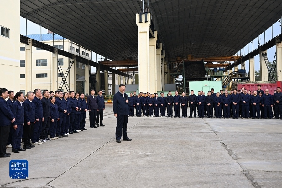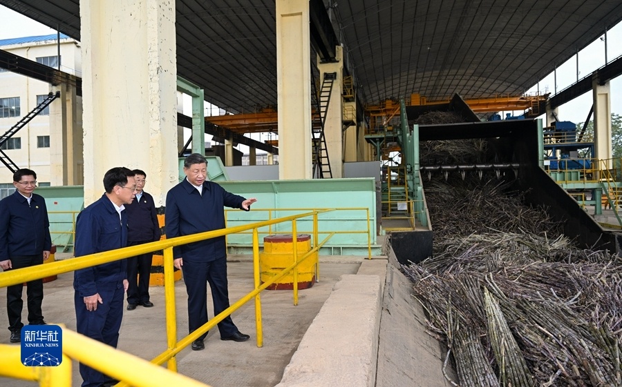 这是14日下午,习近平在来宾东糖凤凰有限公司考察。